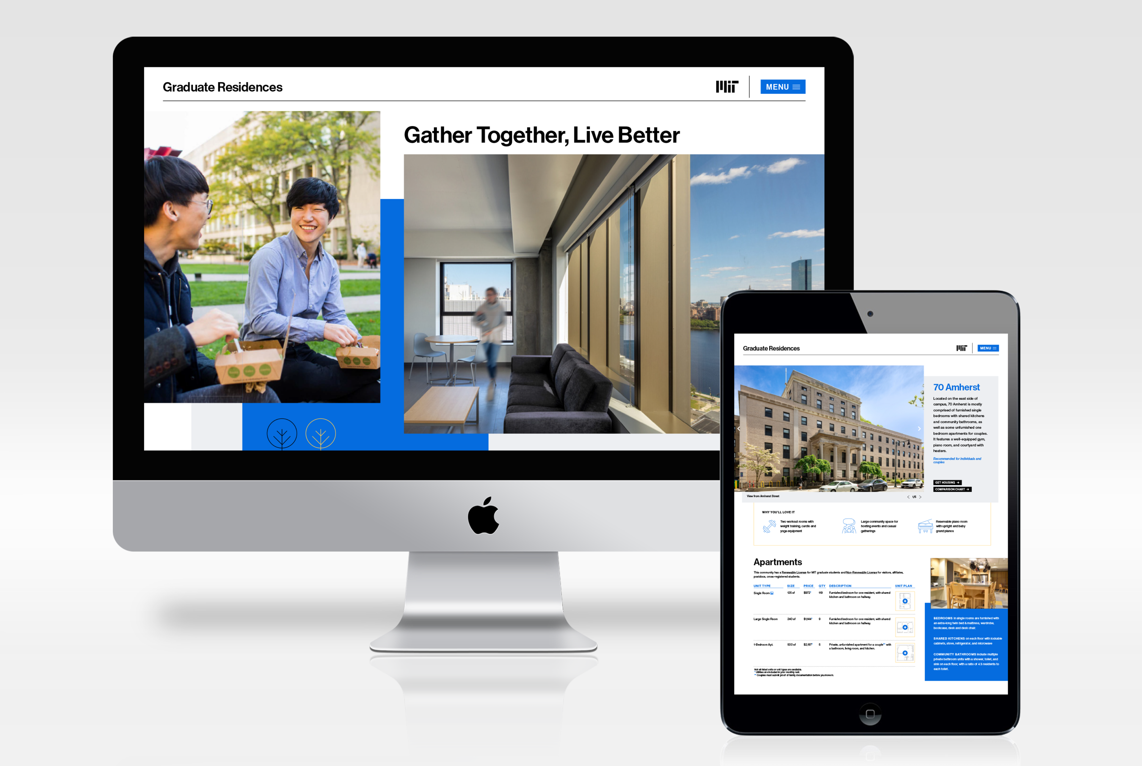 When adding a brand new building to their graduate housing, MIT needed help advertising the expanded on-campus housing availability to current and prospective graduate students. I worked with the Stantec Brands & Experiences team as Senior Graphic Designer to create a website that organized that information while introducing the newest building.