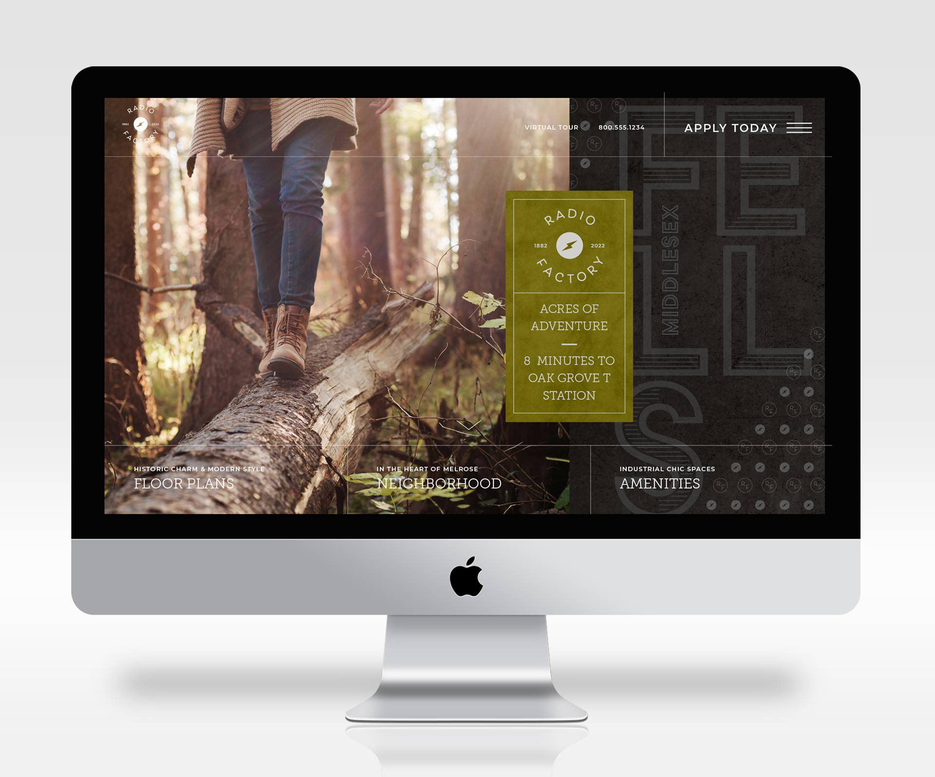 Once home to the National Radio Company, Radio Factory is a residential property in a renovated mill building in Melrose, Massachusetts. As Senior Graphic Designer, I worked with the Stantec Brands & Experiences team to design the property's website and brochure, including a custom illustrated map.
