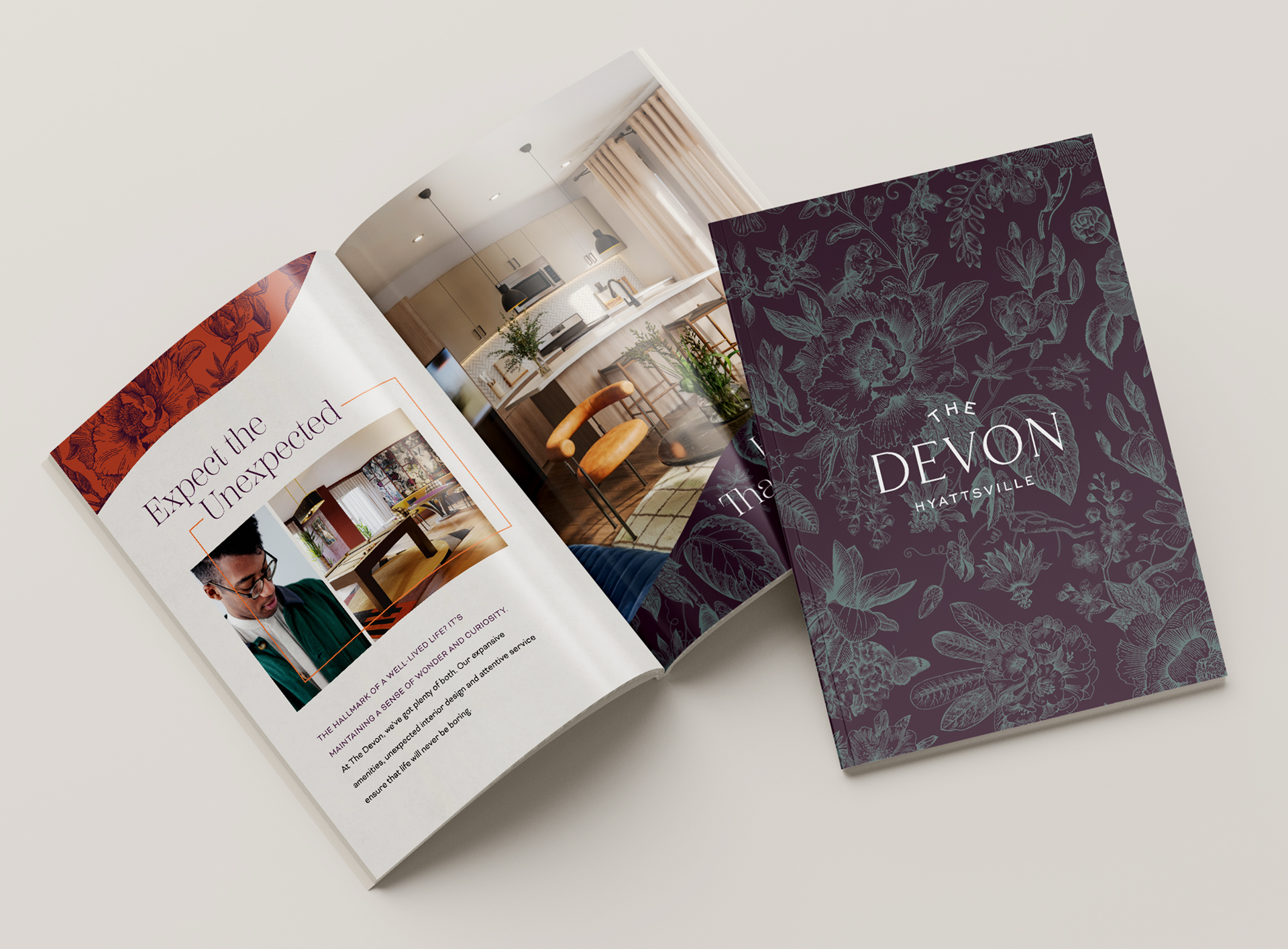 The Devon is a residential property in Hyattsville, Maryland. As Senior Graphic Designer, I worked with the Stantec Brands & Experiences team to design the website and print collateral for the brand campaign, which emphasized its unique vibe by pairing vintage-inspired patterns with vibrant lifestyle photography.